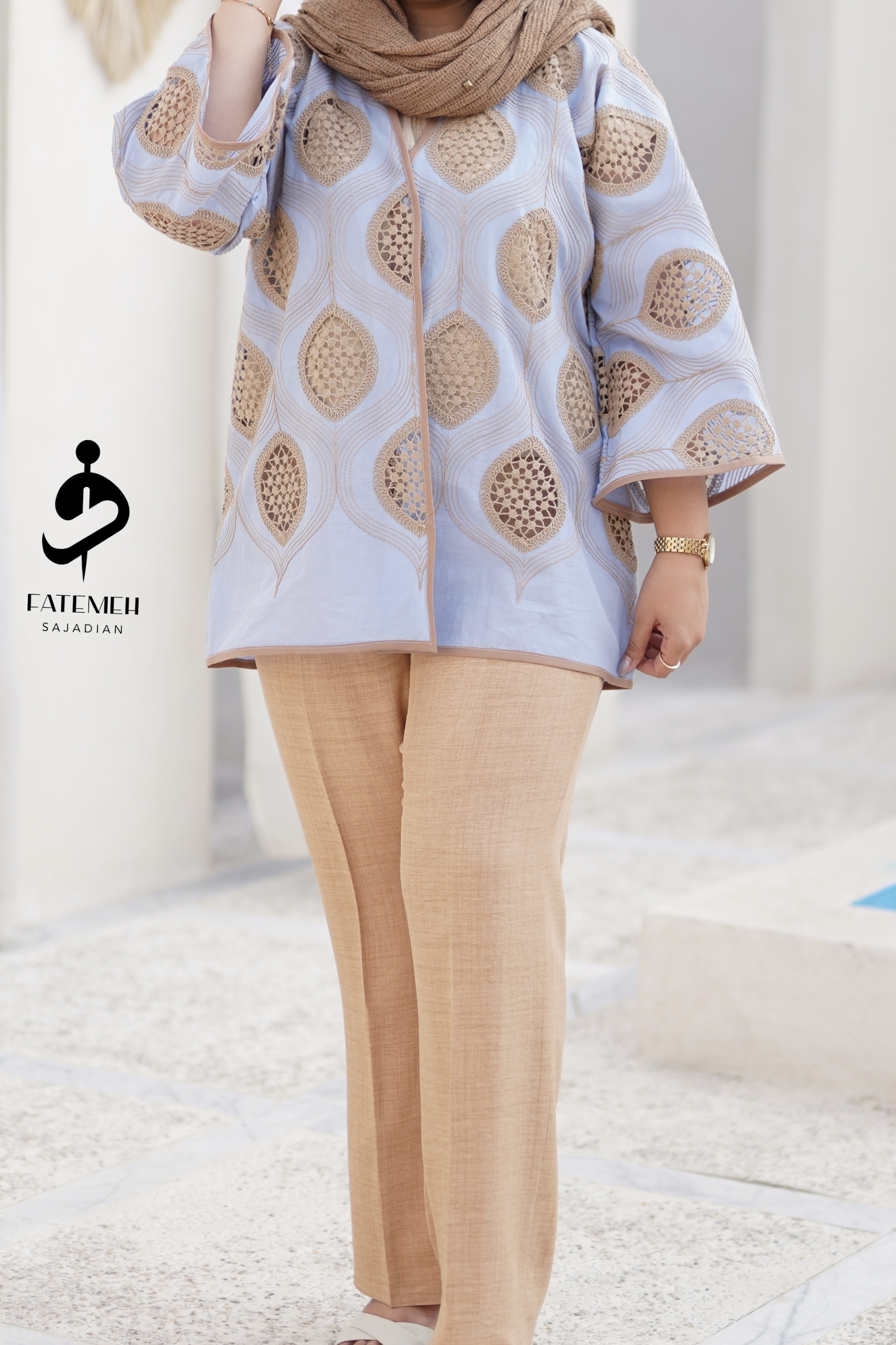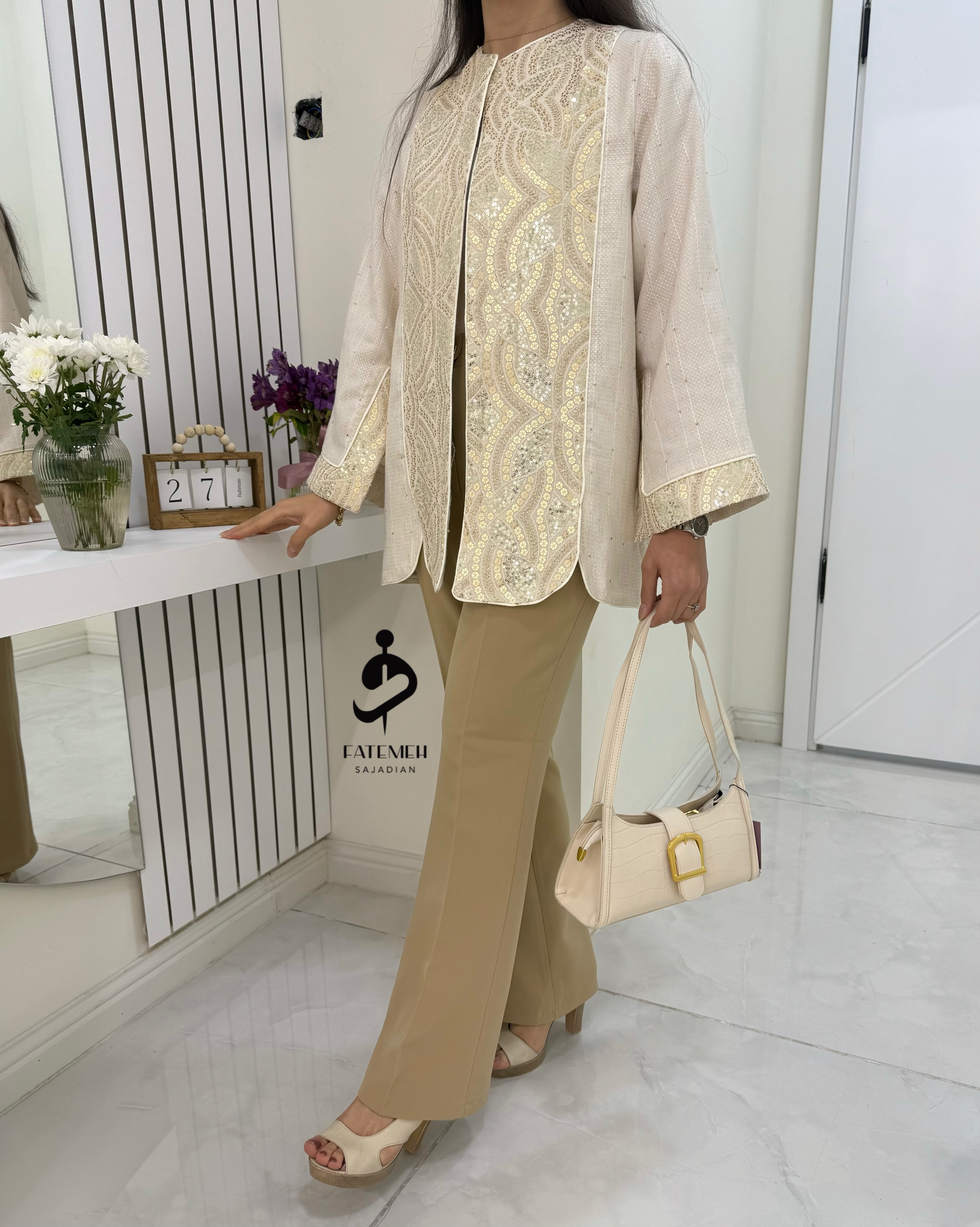 جزئیات: مخمل گلدوزی شده و پولک‌دوزی