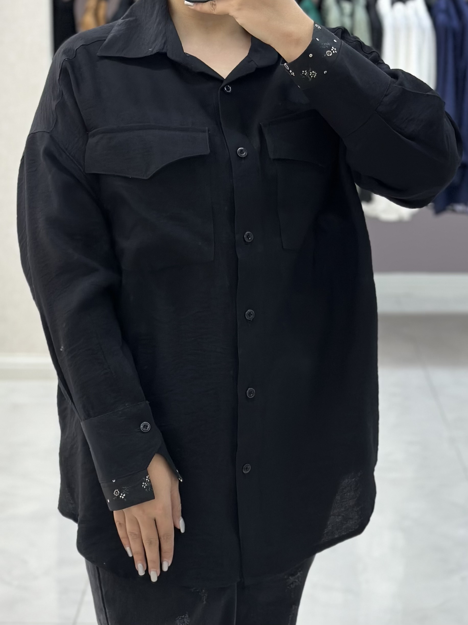 این شومیز با تنخور آزادی که دارد، مخصوص خانمهایی است که به دنبال کارهای خاص و در عین حال کژوال هستند. خرجکار گلدار روی آستینها، روحی تازه به این شومیز لینن بخشیده است.