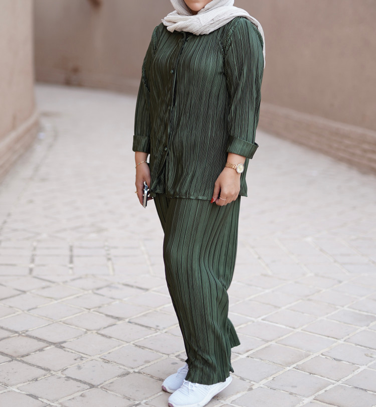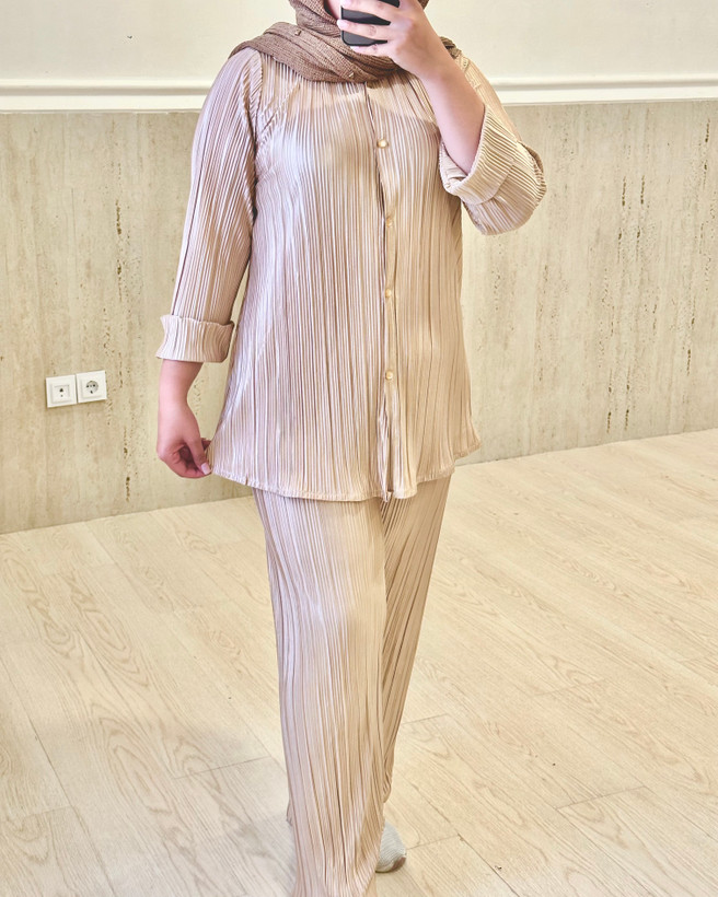 اگر به دنبال یک استایل راحت، سبک و در عین حال مجلسی برای روزهای گرم سال هستید، ست شومیز و شلوار پلیسه مزون سجادیان بهترین انتخاب برای شماست. این ست از پارچه ساتن پلیسه ریز باکیفیت تهیه شده که ریزش بسیار زیبایی روی بدن دارد و به هیچ وجه بدننما نیست.