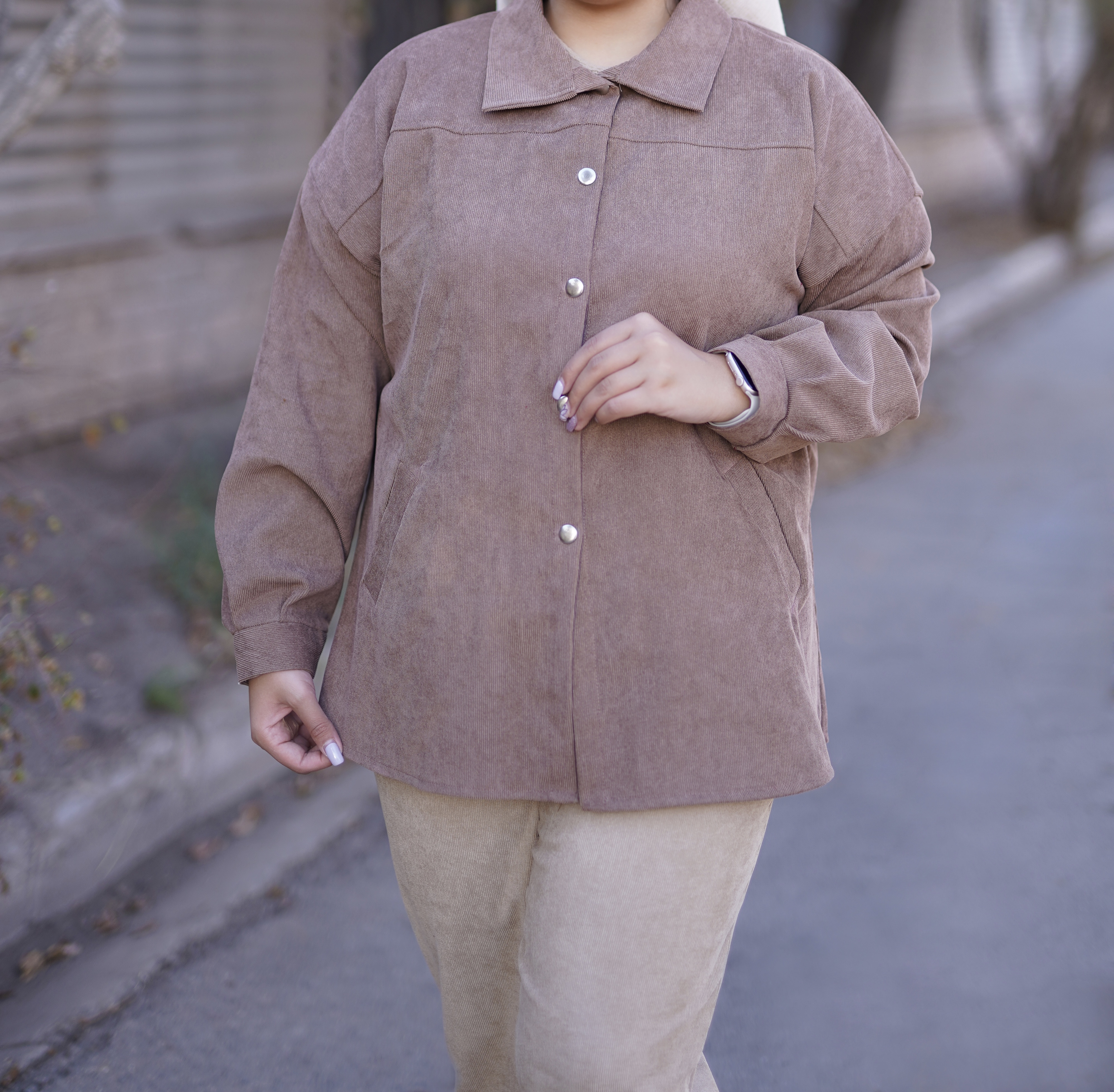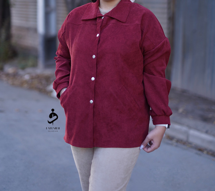 مدل شومیز: جلودکمه، دکمه پرسی، تنخور آزاد، یقه مردانه، آستین مچی دکمهدار