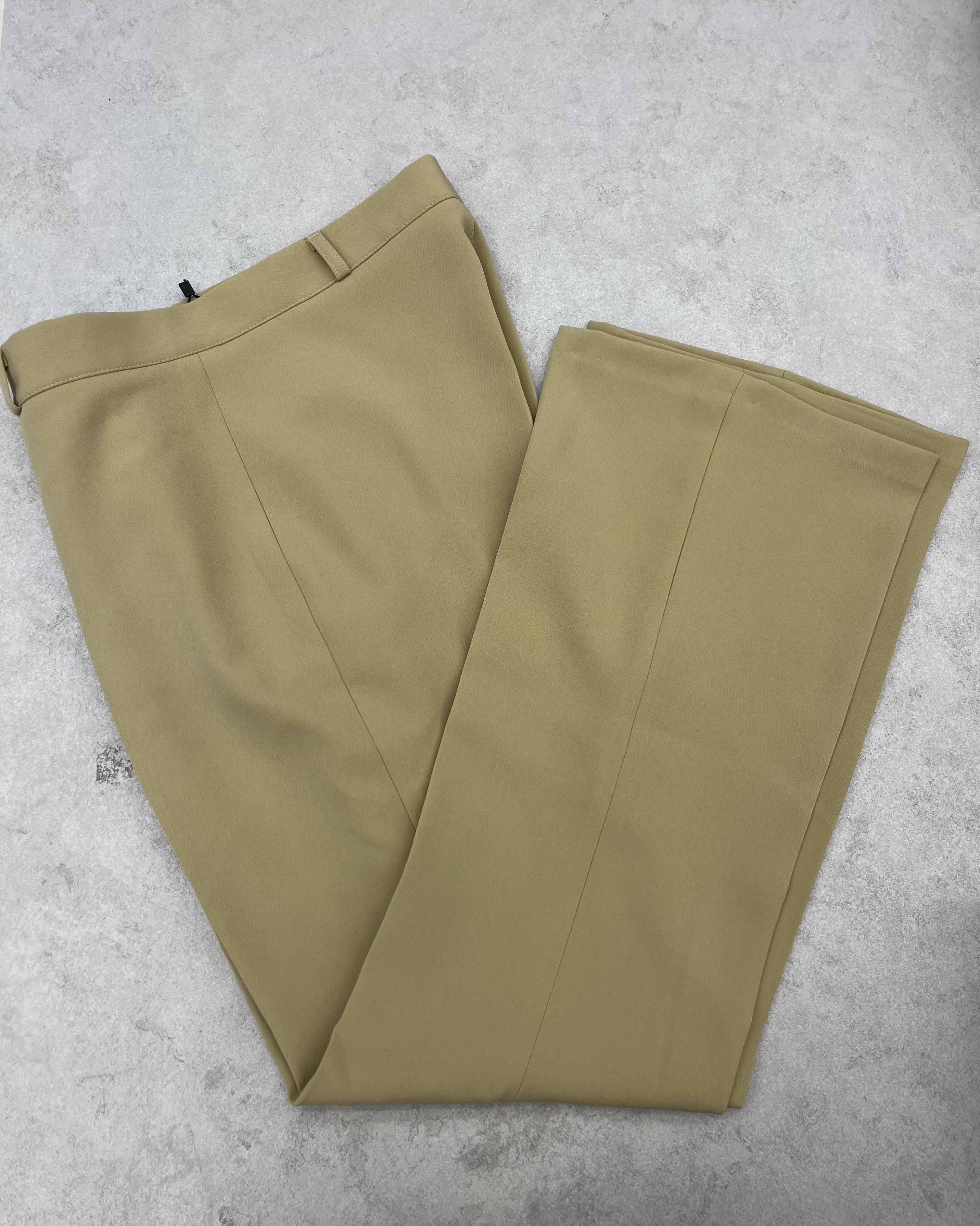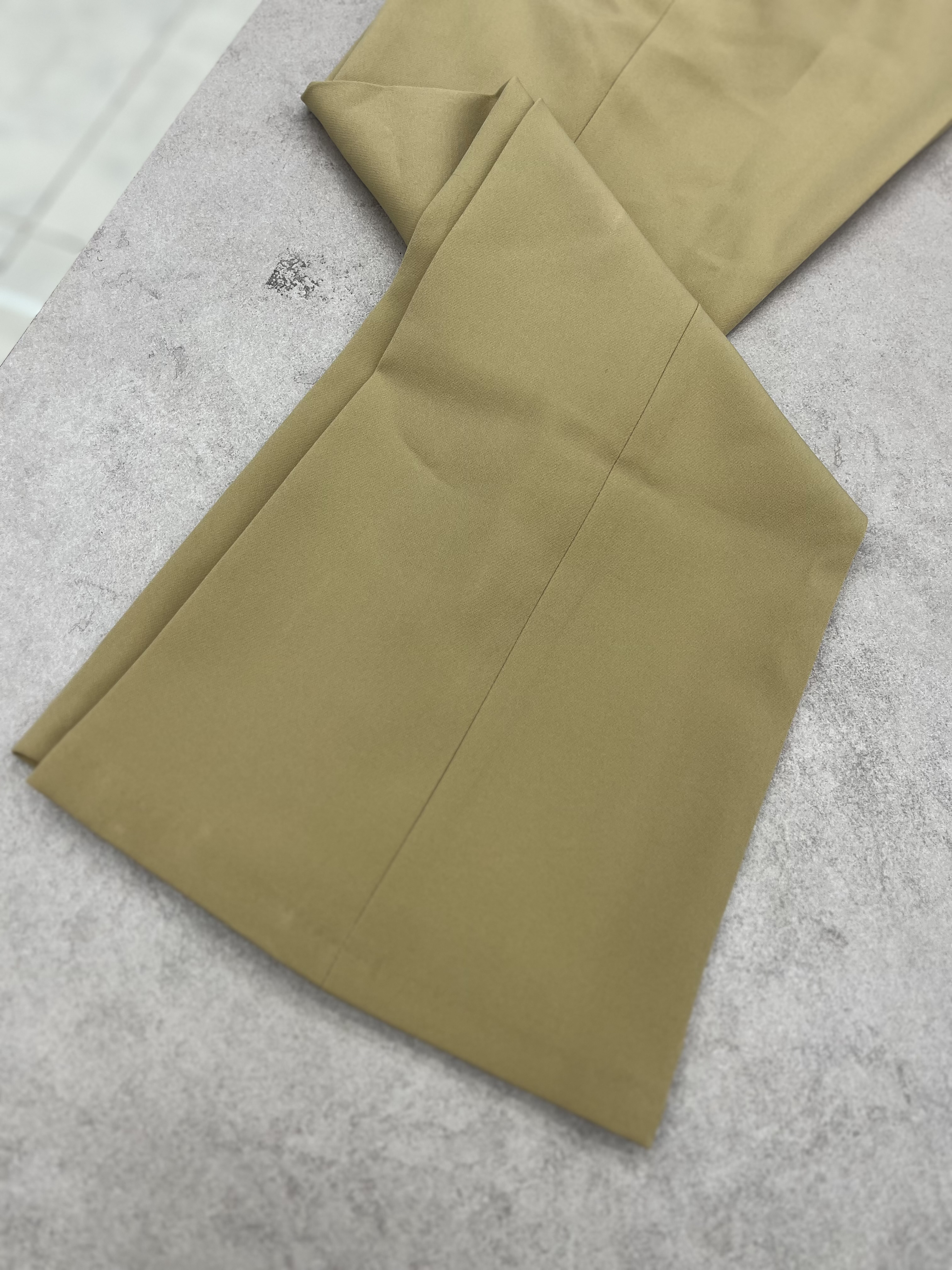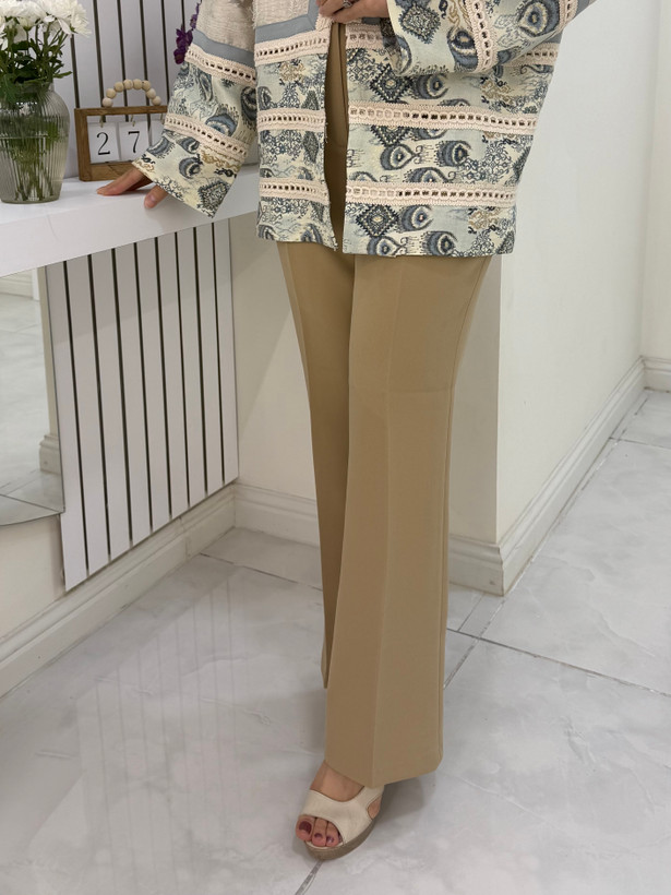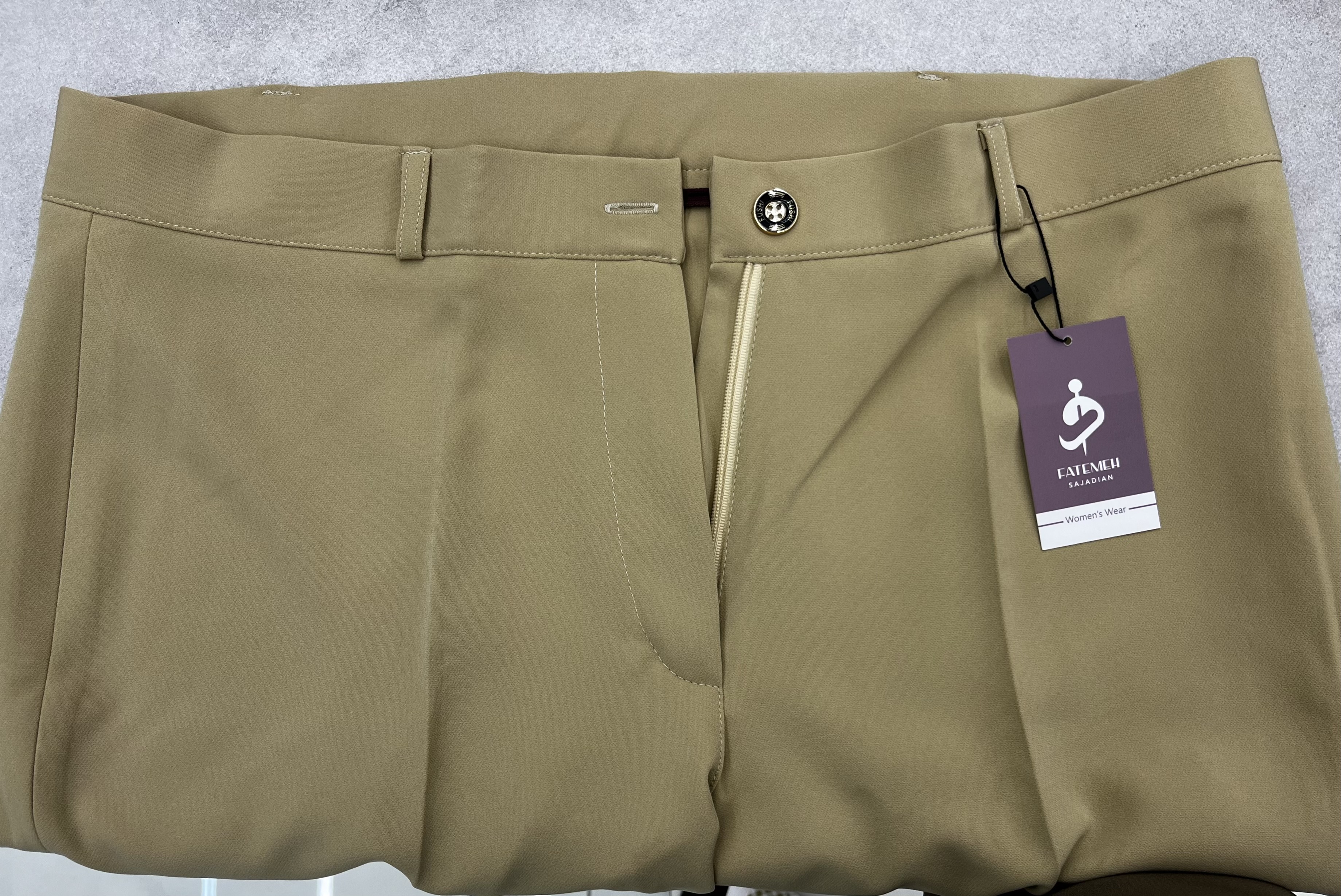 این شلوار با جنس کرپ سوپر مازراتی درجه یک، ایستایی فوقالعادهای در پا دارد. مدل دمپا گشاد آن استایلی کلاسیک و شیک به شما میبخشد. کمر دکمه و زیپدار در کنار پارچه باکیفیت، راحتی و دوام را تضمین میکند.