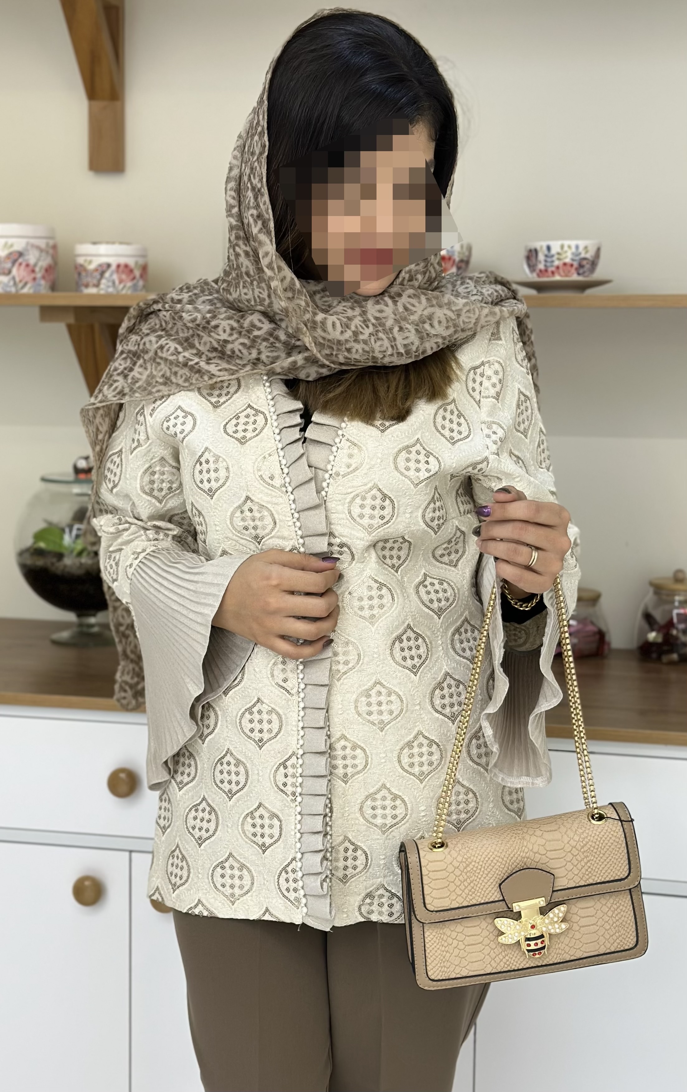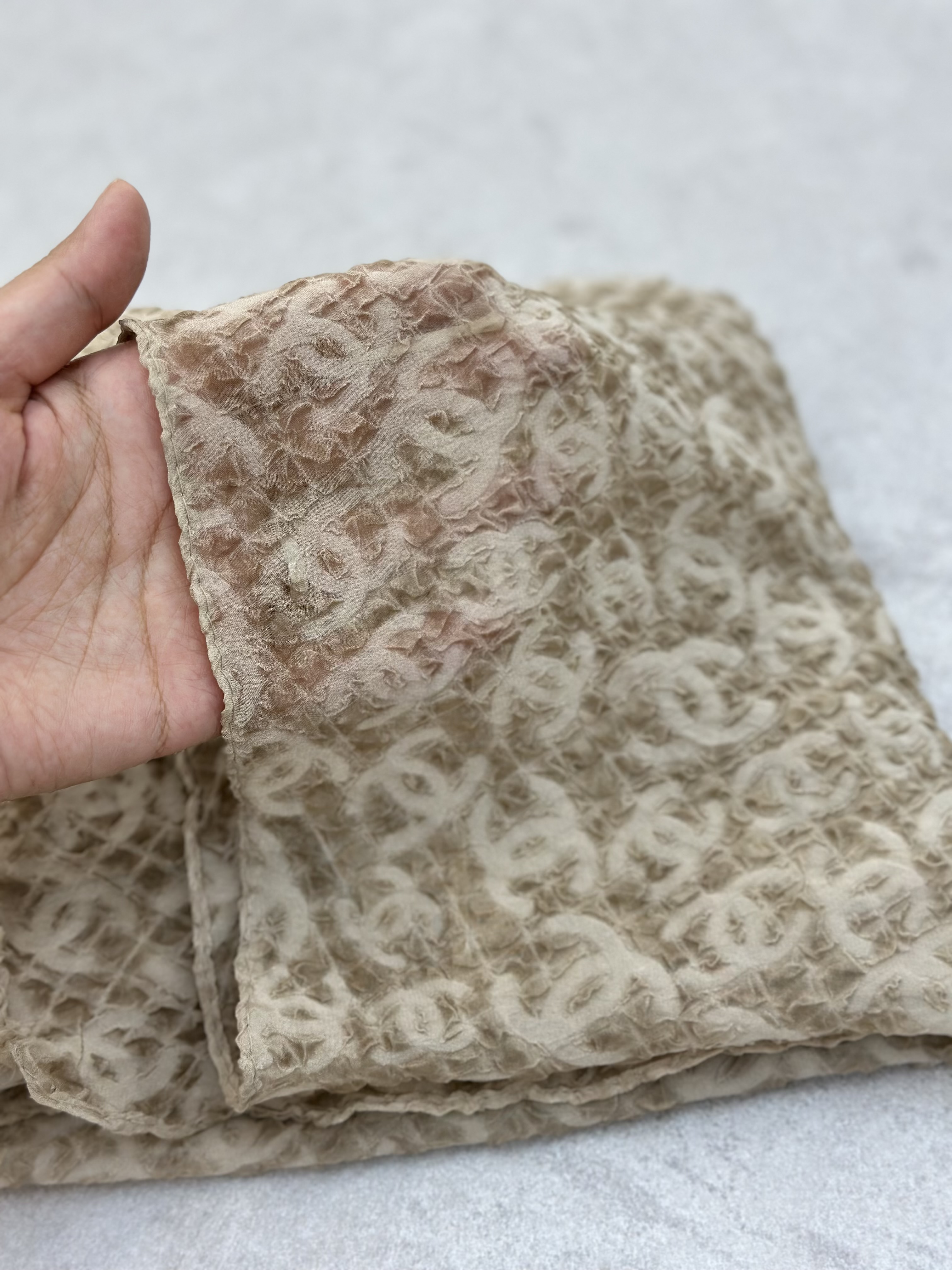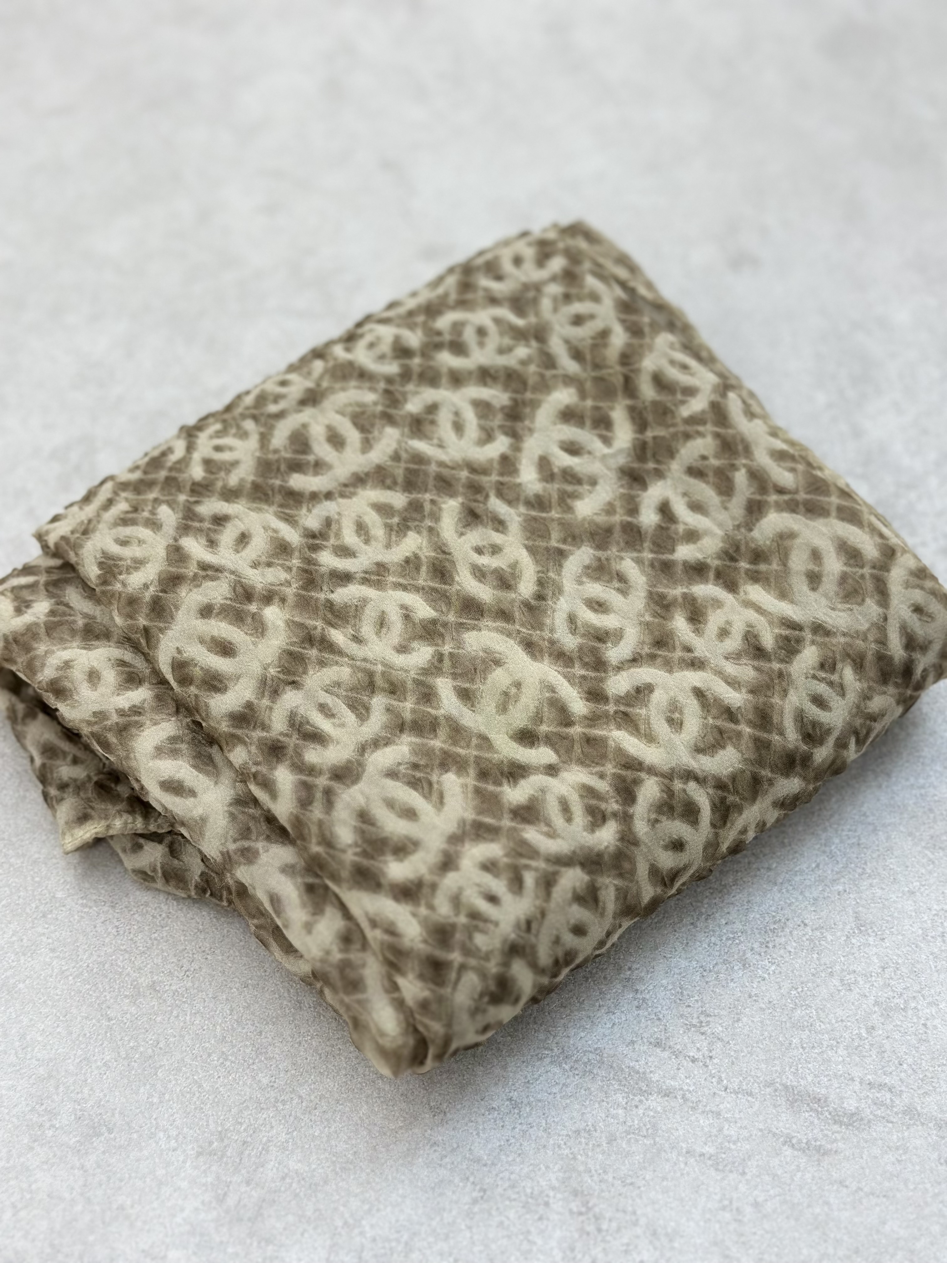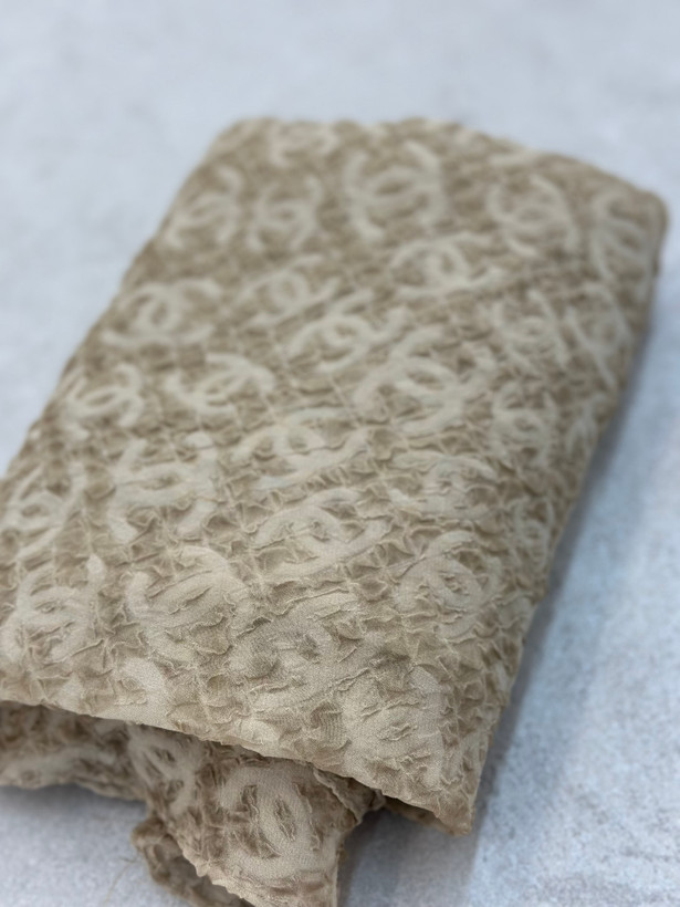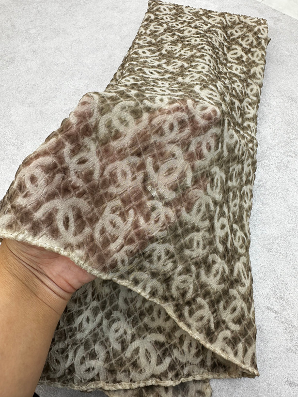 شال حریر پفکی طرح Chanel رنگ نسکافه‌ای