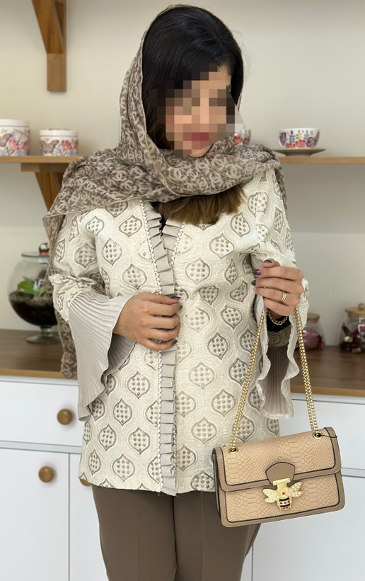 شال حریر پفکی طرح شنل رنگ خردلی مزون سجادیان