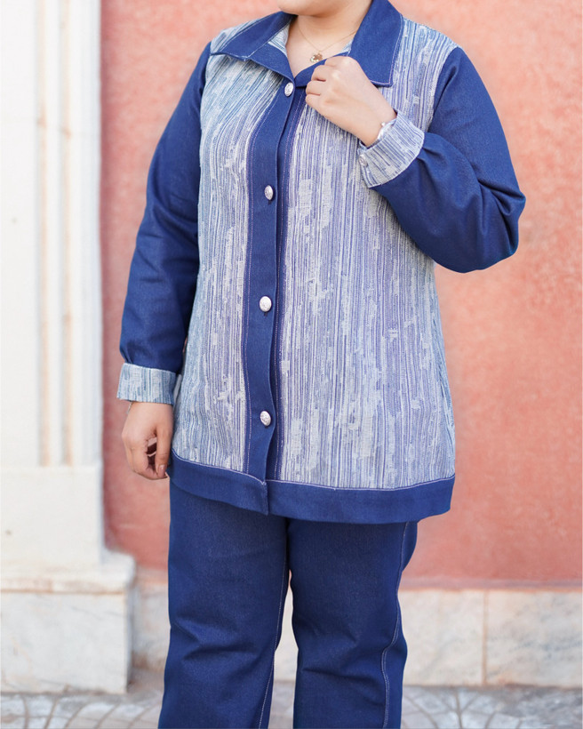 این ست کت و شلوار جین با طراحی راهراه مدرن، انتخابی عالی برای خانمهایی است که به دنبال استایلی اسپرت و در عین حال شیک هستند. از ترکیب پارچه جین اپلیکه و جین ساده دوخته شده و خوشکُپ بودن آن تضمین شده است.