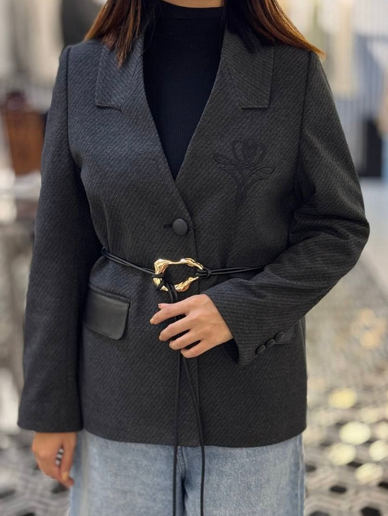جنس کت فوتر کجراه گلدوزی شده است. جیبها نما هستند و از چرم استفاده شده است. دارای کمربند و یک دکمه است (دکمه اضافی هم موجود هست). داخل کار کامل آستردوزی شده است. کپ کار فوق العاده زیباست و کاملا فیت تن هست.
