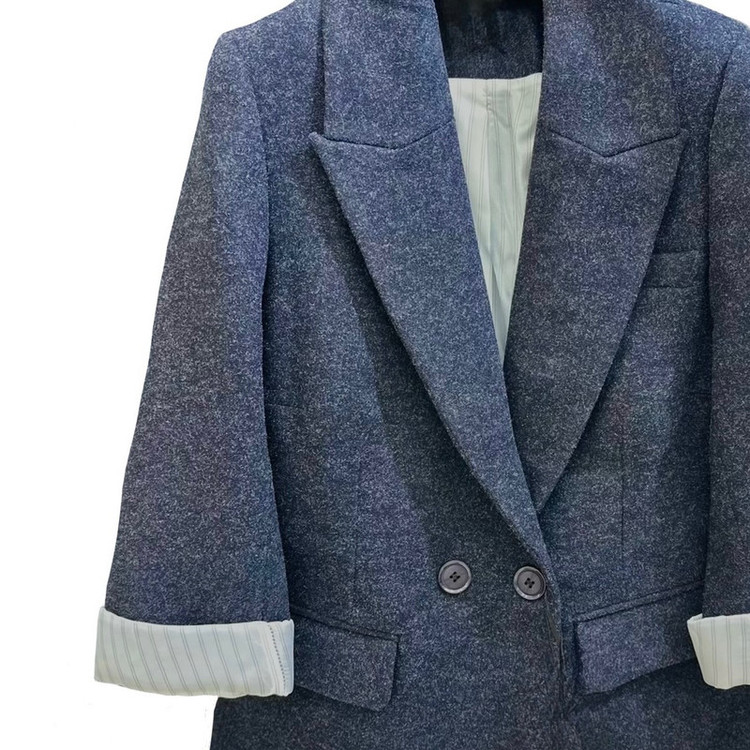 جنس کت فوتر است و داخل کت کامل آسترکشی شده است. مدل آستین ساده است که با تا کردن آن مدل جدیدی میشود. یقه کت بلیزر و داراس سرجیب و دو جیب کاربردی است. پشت کت چاک دارد. کپ کت ماملا فیت است و مناسب سایز ۳۶ تا ۴۶ است. کت با تک دکمه بسته میشود و یک دکمه اضافی روی محصول وجود دارد.
