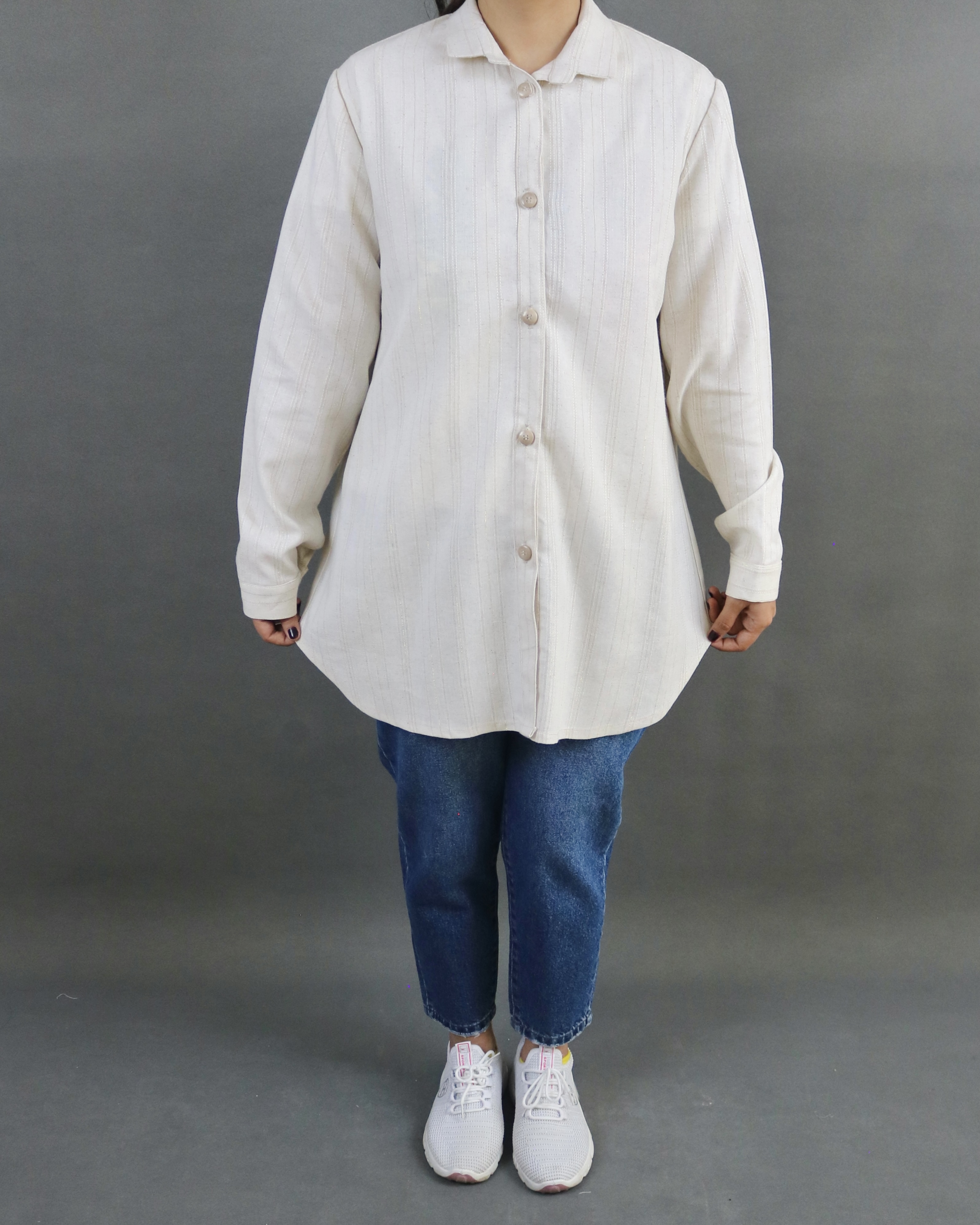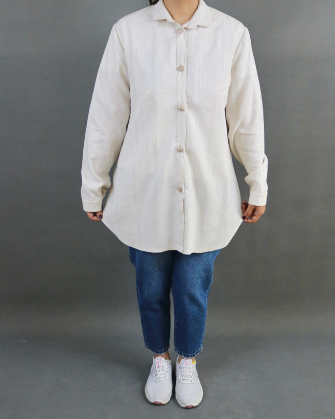 مانتو شومیزی جنس لینن بسیار مرغوب و طرح راه راه، جلودکمه و آستین مچی، بدون آبرفت