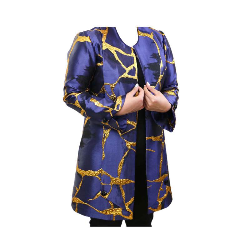پارچه این مانتو از ژاکارد ترک استفاده شده که یکی از پارچه های مرغوب بازار است. طراحی خاص مدل یقه و آستین این کار متفاوت و خاص کرده است. فقط قسمت جلوی لباس از لایه استفاده شده و داخل کار تمام گان کشی شده است.