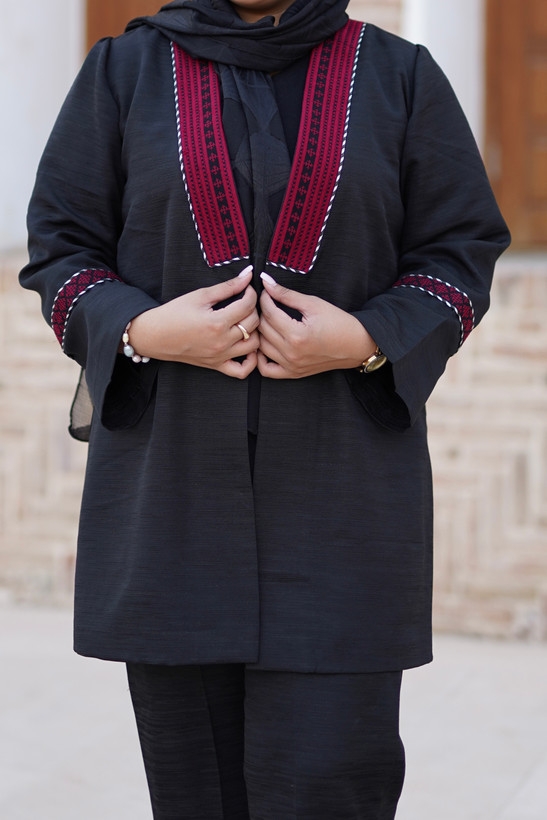 این مدل با بهرهگیری از پارچه کتان لمه و پنلهای سوزندوزی بلوچی در قسمت جلو و آستینها، همراه با مغزیدوزی کامل، یک استایل کتی بسیار شیک را برای شما فراهم میآورد.